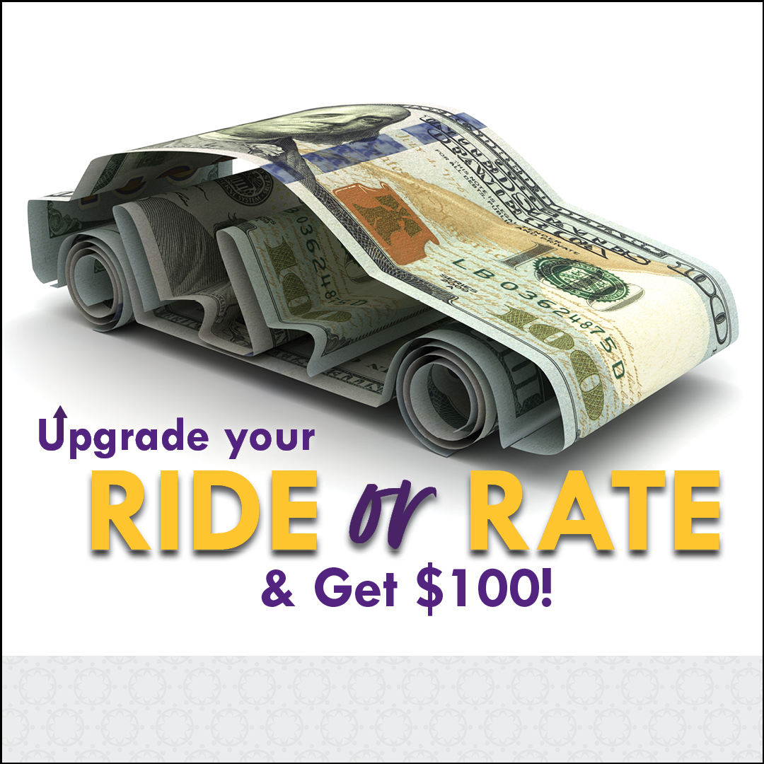 Offer available on qualifying new, used, and refinanced auto loans of $10,000+. Member must maintain the loan in good standing for at least two (2) months to receive the incentive. $100 will be deposited into the member’s UNITE account after the qualification period. Subject to credit approval. Offer subject to change without notice. *You may still be responsible for state title, registration, or other government fees, and pre-existing loan terms or penalties from your current lender may apply. Membership and credit approval required. Federally insured by NCUA.